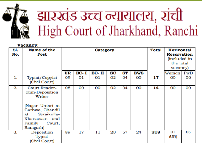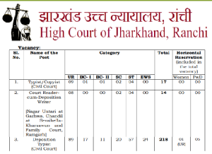 Jharkhand of High Court Recruitment Various Vacancy Online Form 2024