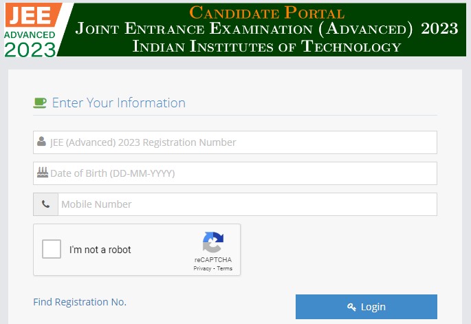 Admit Card IIT JEE Advanced Admission Online Form 2023