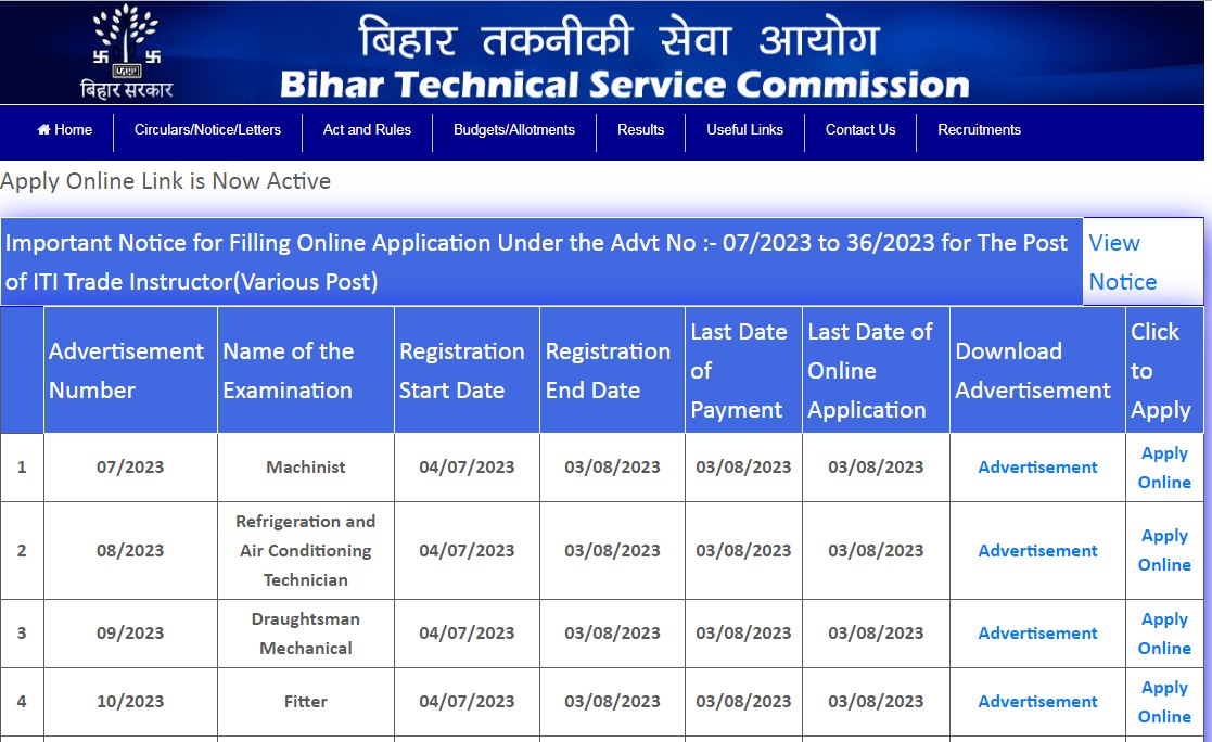 The ITI Instructor Recruitment Notification has been Announced by the Bihar Technical Service Commission (BTSC). Candidates who are interested in the position details and have met all requirements may read the notification and submit an online application.