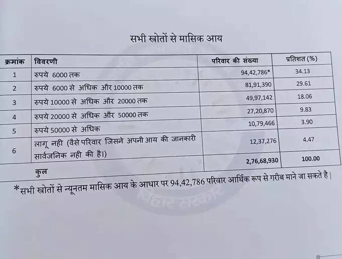 Bihar सरकार ने जातीय गणना की आर्थिक सामाजिक रिपोर्ट जारी किया है कि जातीय गणना की आर्थिक सामाजिक रिपोर्ट आज दोपहर 2 बजे रिपोर्ट को Bihar विधानसभा में पेश किया गया … इसके बाद रिपोर्ट पर चर्चा हुई … जातीय गणना की सामाजिक-आर्थिक रिपोर्ट में बिहार के लोगों की औसत आय, उनका शैक्षणिक स्तर, कितने लोग नौकरी से अपना जीवन यापन करते हैं इत्यादि की जानकारी दी गयी …. साथ ही रिपोर्ट में प्रवासी बिहारियों के बारे में भी सूचना दी जा गयी है…. इससे पहले दो अक्टूबर 2023 को जातीय गणना का आंकड़ा सरकार ने जो जारी किया |