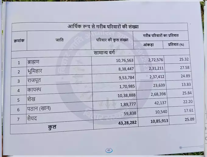 - 25.3 फीसदी ब्राह्मण, 25.32 फीसदी भूमिहार गरीबी रेखा के नीचे