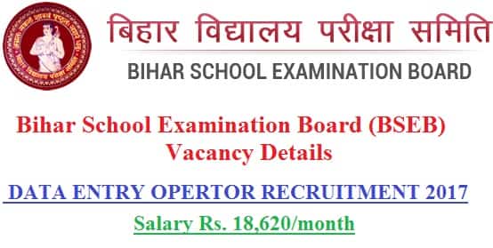Bihar School Examination Board (BSEB) has issued a notification for Data Entry Operator vacancies on regular & contract basis. Eligible candidates can apply online . Kindly Download full advertisement Other details like age limit, educational qualification, selection process, application fee & how to apply are Download given below.