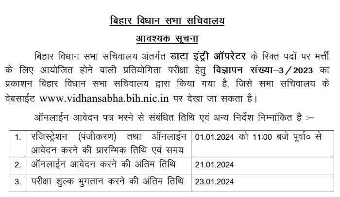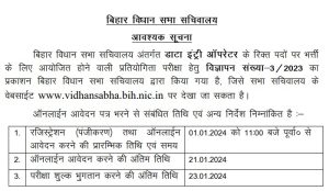 Bihar Vidhan Sabha Data Entry Operator Recruitment 2024