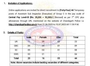 Chandigarh Police ASI (Executive) Recruitment 2023
