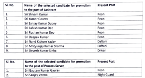List of Selected Candidates/ Class- IV for Promotion to the Post of Assistant.