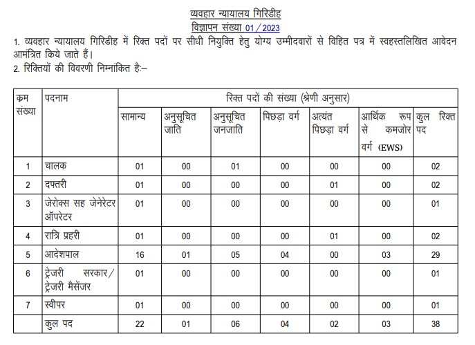 рд╡реНрдпрд╡рд╣рд╛рд░ рдиреНрдпрд╛рдпрд╛рд▓рдп, рдЧрд┐рд░рд┐рдбреАрд╣ рдореЗрдВ рд░рд┐рдХреНрдд рдкрджреЛрдВ рдкрд░ рд╕реАрдзреА рдирд┐рдпреБрдХреНрддрд┐ рд╣реЗрддреБ рдпреЛрдЧреНрдп рдЙрдореНрдореАрджрд╡рд╛рд░реЛрдВ рд╕реЗ рд╡рд┐рд╣рд┐рдд рдкрддреНрд░ рдореЗрдВ рд╕реНрд╡рд╣рд╕реНрддрд▓рд┐рдЦрд┐рдд рдЖрд╡реЗрджрди┬а рдЖрдордВрддреНрд░рд┐рдд рдХрд┐рдпреЗ рдЬрд╛рддреЗ рд╣реИрдВред