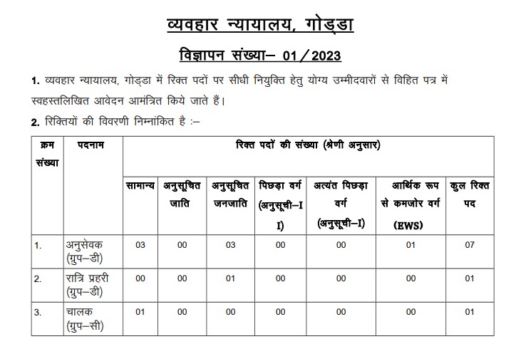 व्यवहार न्यायालय, गोड्डा रिक्तियों की विवरणी निम्नांकित है:- 09 Posts