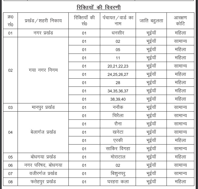 - आवेदन पत्र जमा करने का स्थान संबंधित प्रखंड विकास पदाधिकारी, का कार्यालय/शहरी क्षेत्र के कार्यपालक पदाधिकारी, नगर निगम गया / नगर परिषद बोधगया का कार्यालय