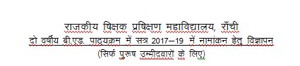Govt. Teacher Training Collage , Ranchi has Invited for admission in B.ed (2 year) . For More Datails Given Below