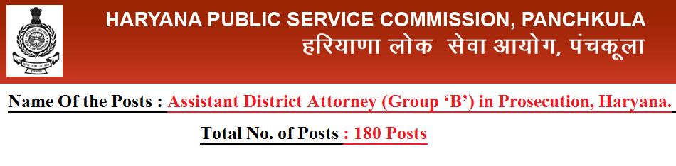 - Name Of the Posts : Assistant District Attorney (Group ‘B’) in Prosecution, Haryana.