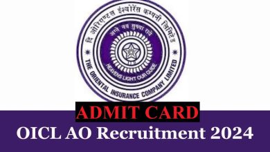 OICL AO Pre Exam Admit Card for 100 Various Post 2024