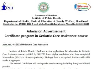 IPH Jharkhand Geriatric-Care Assistance Course Admission Online Application Form
