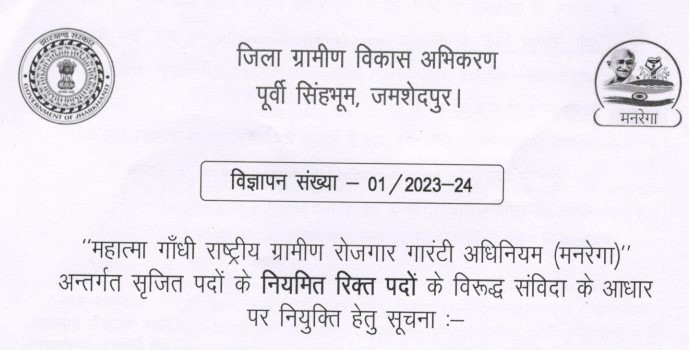 Jamshedpur East SinghbhumMgnrega Vacancy : पूर्वी सिंहभूम (जमशेदपुर ) मे निकली मनरेगा योजनान्तर्गत विभिन्न पदों भर्ती, यहाँ से पूरी जानकारी देखें