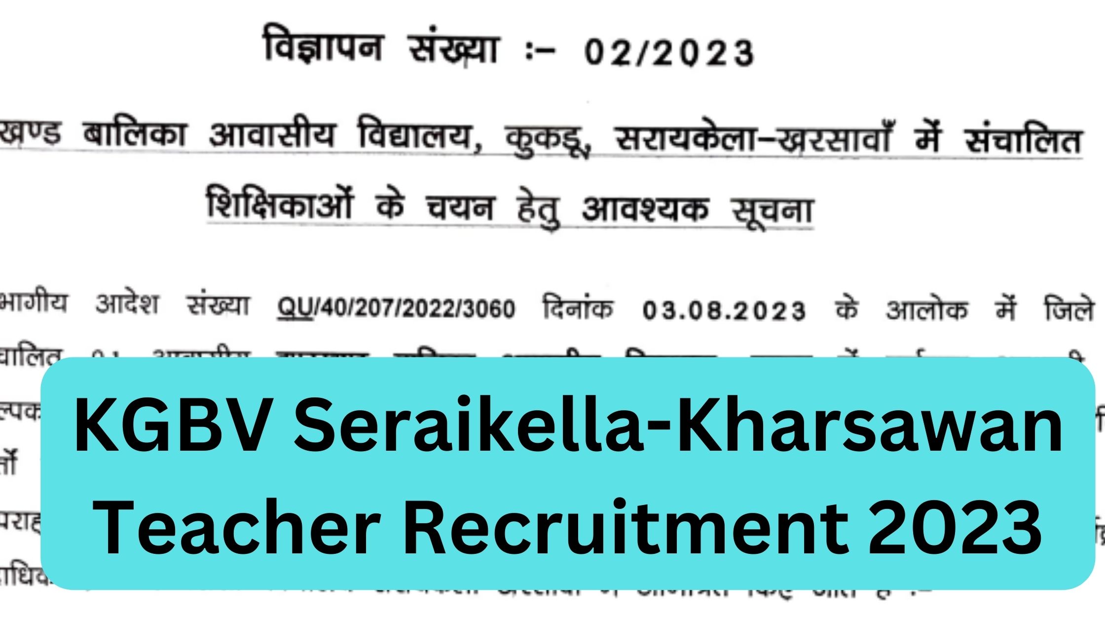जिला में संचालित झारखण्ड बालिका आवासीय विद्यालय, कुकडू, सरायकेला-खरसावाँ में पूर्णतया अस्थायी एवं अल्पकालीन संविदा के आधार पर चयन हेतु योग्य एवं अहर्ताधारी केवल महिला अभ्यर्थियों से निम्न अंकित शर्तों के अधीन शैक्षिक रिक्त पदों के लिए विहित प्रपत्र में आवेदन दिनांक 20.10.2023 के अपराह्न 05:00 बजे तक निबंधित डाक के माध्यम से जिला शिक्षा पदाधिकारी-सह-जिला कार्यक्रम पदाधिकारी, समग्र शिक्षा अभियान, जिला कार्यालय सरायकेला-खरसावाँ 833219 में आमंत्रित किए जाते हैं :-