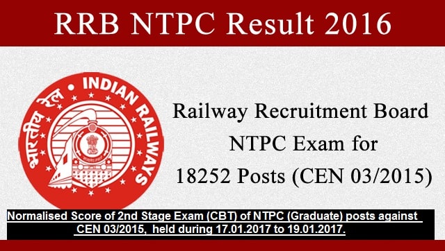 RRB NTPC Exam Normalized Score 2017