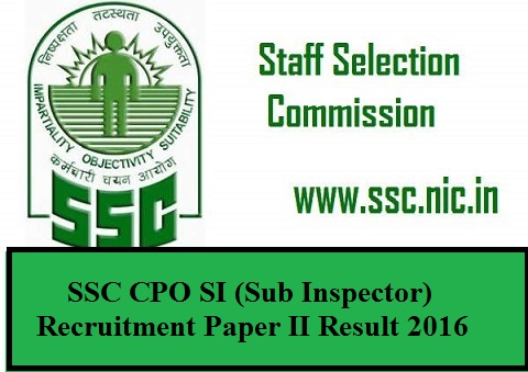 SSC CPO SI (Sub Inspector) Recruitment Paper II Result 2016