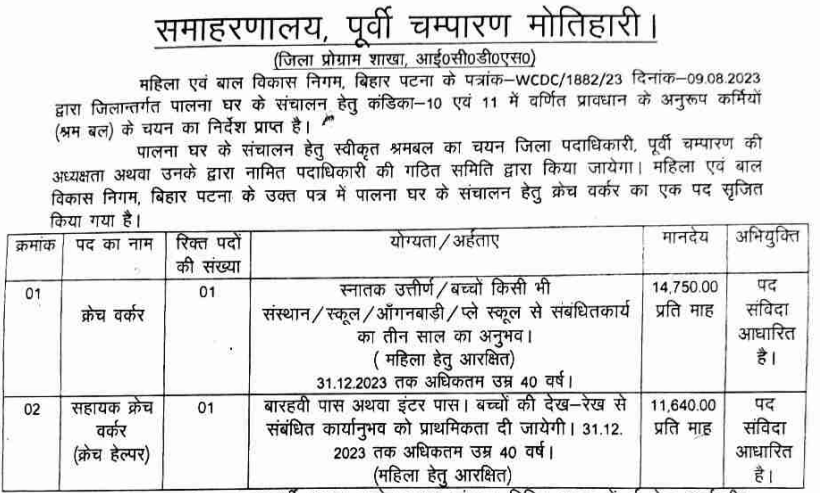 Home/WCDC East Champaran Recruitment of Creche worker and Assistant Creche worker 2024/WCDC East Champaran Recruitment WCDC East Champaran Recruitment WCDC East Champaran Recruitment